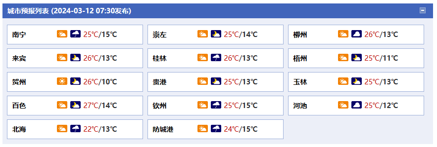 廣西氣象臺(tái)12日05時(shí)發(fā)布預(yù)報(bào):
