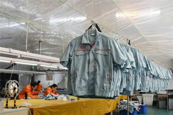 3月12日,位于山西陽泉平定縣的山西鼎新服裝服飾有限公司生產(chǎn)車間內(nèi),電動(dòng)縫紉機(jī)聲此起彼伏,各工種的工人們加速趕制來自廣州安川機(jī)電公司的春夏季工作服訂單。該公司迎來了新的一年首季開門紅,完成訂單12000多件,9月份前訂單全部排滿。