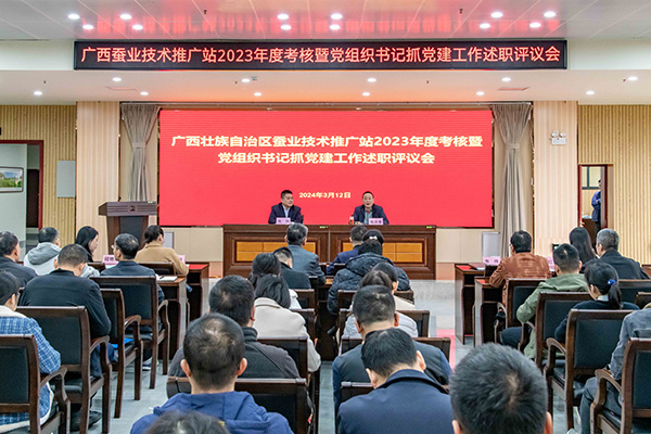 3月12日上午,自治區(qū)農(nóng)業(yè)農(nóng)村廳直屬單位2023年度考核工作組第七小組在農(nóng)產(chǎn)品質(zhì)量安全監(jiān)管處處長張慶軍帶領(lǐng)下到廣西蠶業(yè)技術(shù)推廣站開展2023年度考核暨黨組織書記抓黨建工作述職評議工作。廣西蠶業(yè)技術(shù)推廣站全站在職在編人員參加述職評議會。