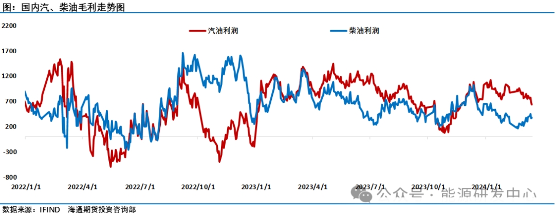 庫(kù)存方面,IEA判斷石油水上儲(chǔ)存量達(dá)到自新冠疫情高峰以來的第二高水平。全球陸上石油庫(kù)存連續(xù)第七個(gè)月下降,降至至少2016年以來的最低水平。EIA周度庫(kù)存數(shù)據(jù)顯示除卻戰(zhàn)略儲(chǔ)備的商業(yè)原油庫(kù)存減少153.6萬桶至4.47億桶,降幅0.34%。戰(zhàn)略石油儲(chǔ)備(SPR)庫(kù)存增加59.6萬桶至3.616億桶,增幅0.17%。庫(kù)欣庫(kù)存減少22萬桶,汽油庫(kù)存減少566.2桶,預(yù)期減少180萬桶;精煉油庫(kù)存增加88.8萬桶,預(yù)期減少15萬桶。美國(guó)至3月8日當(dāng)周EIA汽油庫(kù)存降幅錄得2023年11月3日當(dāng)周以來最大,為連續(xù)第6周錄得下降。精煉油庫(kù)存增幅錄得2024年1月12日當(dāng)周以來最大,結(jié)束此前連續(xù)7周的下降趨勢(shì)。整體來看石油市場(chǎng)庫(kù)存整體處于降庫(kù)階段對(duì)油價(jià)友好。