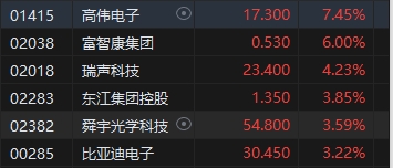3月18日消息,今日港股三大指數(shù)低開高走,截至收盤,恒生指數(shù)(16737.119, 16.23, 0.10%)漲0.1%,報16737.12點,恒生科技指數(shù)(3594.22, 44.38, 1.25%)漲1.25%,國企指數(shù)漲0.48%。盤面上,科網(wǎng)股普遍上漲,快手漲超4%,小米、京東、騰訊漲超2%;汽車股集體大漲,東風集團股份(3.73, 0.55, 17.30%)漲超17%;蘋果概念股漲幅居前,高偉電子(17.3, 1.20, 7.45%)漲超7%;基建股表現(xiàn)活躍,中國中鐵(3.97, 0.14, 3.65%)漲超3%;互聯(lián)網(wǎng)醫(yī)療股齊漲,平安好醫(yī)生(12.56, 0.80, 6.80%)漲近7%;中資券商股全天強勢,中金公司(10.32, 0.47, 4.77%)漲近5%;內(nèi)房股普遍走低,龍湖集團(10.06, -0.48, -4.55%)跌超4%;黃金、煤炭、香港地產(chǎn)股跌幅靠前。