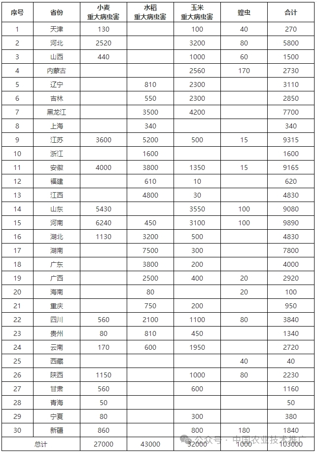 近日,農(nóng)業(yè)農(nóng)村部辦公廳下發(fā)《2024年“蟲口奪糧”保豐收行動(dòng)方案》的通知。通知中表示,據(jù)全國農(nóng)作物病蟲害測(cè)報(bào)網(wǎng)監(jiān)測(cè)和專家會(huì)商分析,預(yù)計(jì)2024年農(nóng)作物重大病蟲害呈重發(fā)態(tài)勢(shì),全國預(yù)計(jì)發(fā)生面積23.3億畝次,比2023年和近5年實(shí)際發(fā)生面積分別增加26.2%和18.4%,對(duì)70%以上的農(nóng)作物產(chǎn)區(qū)構(gòu)成威脅,需加大組織力度,采取有效措施,堅(jiān)決遏制暴發(fā)危害勢(shì)頭,最大限度降低危害損失,實(shí)現(xiàn)“蟲口奪糧”保豐收。