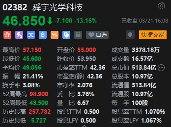 電子零件板塊低迷,舜宇光學(xué)科技績(jī)后跌超13%。消息面上,舜宇2023年收入316.8億元,同比跌4.6%,且低于市場(chǎng)預(yù)期的323.1億元;純利約11億元,同比跌54.3%,且低于市場(chǎng)預(yù)期的12.7元;毛利同比跌30.5%至45.9億元,毛利率跌5.4個(gè)百分點(diǎn)至14.5%。派末期股息每股0.219港元,同比跌56.2%,股息率約0.4%。