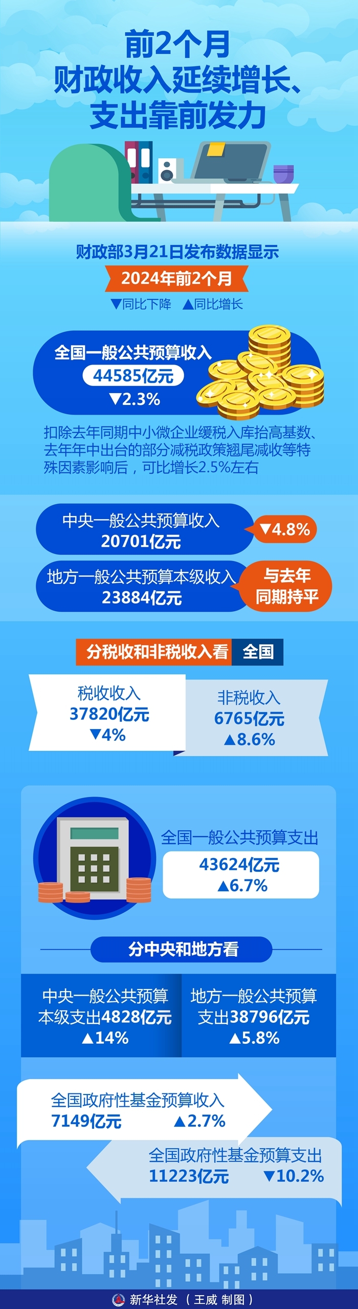 數(shù)據(jù)顯示,全國(guó)政府性基金預(yù)算收支方面,今年前2個(gè)月,全國(guó)政府性基金預(yù)算收入7149億元,同比增長(zhǎng)2.7%;全國(guó)政府性基金預(yù)算支出11223億元,同比下降10.2%。