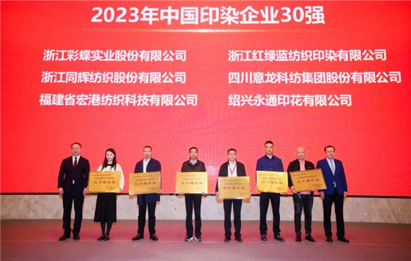 會議還頒發(fā)了2023年中國印染企業(yè)30強、符合《印染行業(yè)規(guī)范條件(2017版)》企業(yè)以及中國印染行業(yè)協(xié)會基地牌匾。