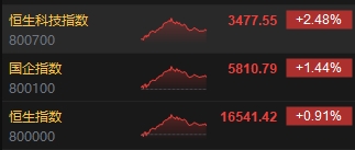 3月28日消息,今日港股三大指數(shù)沖高后小幅回落,截至收盤,恒生指數(shù)(16541.42, 148.58, 0.91%)漲0.91%,報(bào)16541.42點(diǎn),恒生科技指數(shù)(3477.55, 84.12, 2.48%)漲2.48%,國企指數(shù)漲1.44%。盤面上,科網(wǎng)股領(lǐng)漲大市,嗶哩嗶哩漲超8%,美團(tuán)漲超6%,京東漲超5%,百度漲超3%;黃金股全天強(qiáng)勢,靈寶黃金(2.98, 0.57, 23.65%)漲超23%,招金礦業(yè)(10.62, 0.81, 8.26%)漲超8%;電子零件板塊漲幅居前,高偉電子(18.72, 1.02, 5.76%)漲超5%;補(bǔ)貼力度拉動(dòng)消費(fèi)者以舊換新意愿,海爾智家(24.35, 1.85, 8.22%)漲超8%領(lǐng)漲家電股;石油股全天走高,中石油漲超3%;餐飲股表現(xiàn)活躍,九毛九(5.64, 0.37, 7.02%)漲超7%;燃?xì)夤傻忧埃?span style="font-size: 14pt;">北京控股(22.7, -6.55, -22.39%)跌超22%,重型機(jī)械、生物醫(yī)藥、銀行等板塊紛紛逆勢下跌。