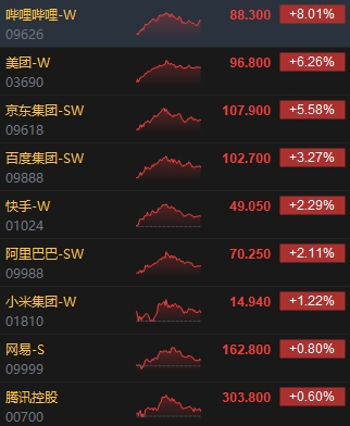科網(wǎng)股領(lǐng)漲大市,嗶哩嗶哩漲超8%,美團(tuán)漲超6%,京東漲超5%,百度漲超3%。有消息稱,央行可能下場買債,“中國版QE”即將開啟。有市場人士認(rèn)為,這意味著央行擴(kuò)表,遏制信用被動(dòng)收縮,利好國債市場。另外,從“成績單”來看,美團(tuán)扭虧為盈大賺超百億元,并創(chuàng)歷史新高;小米實(shí)現(xiàn)盈利翻番,騰訊控股(303.8, 1.80, 0.60%)、嗶哩嗶哩均實(shí)現(xiàn)逾30%增長。