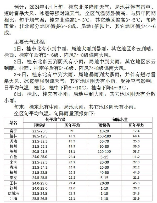 廣西:2024年4月上旬天氣預(yù)報(bào)