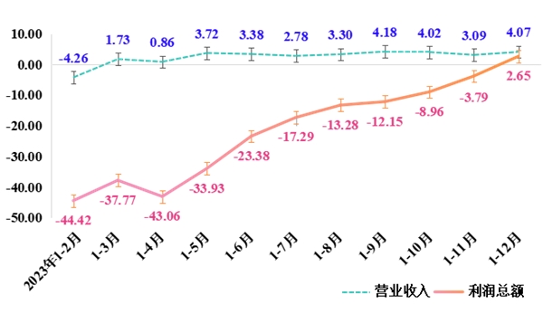 圖1 2023年長絲織造行業(yè)(規(guī)上)營業(yè)收入、利潤總額同比增速(%)