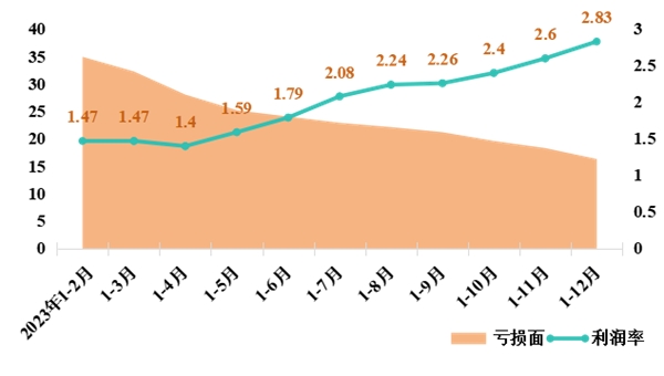 圖2 2023年長絲織造行業(yè)(規(guī)上)利潤率、虧損面變化情況(%)