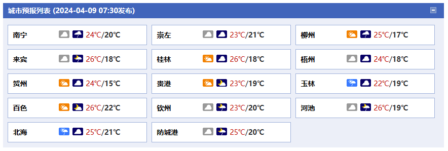 廣西氣象臺(tái)9日05時(shí)發(fā)布預(yù)報(bào):