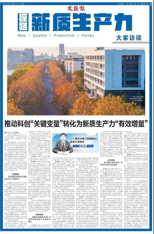 中國工程院院士、東華大學校長俞建勇日前在接受文匯報記者專訪時指出,推動新質生產(chǎn)力發(fā)展的關鍵在于創(chuàng)新——應突出強化創(chuàng)新的革命性突破,同時,要特別注重創(chuàng)新的系統(tǒng)性實現(xiàn)。