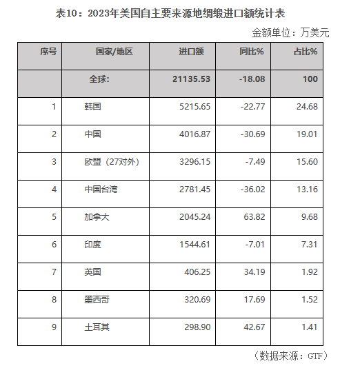 從2022年起,韓國超過中國,成為美國綢緞進(jìn)口第一大來源地。