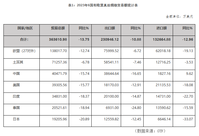 2023年6國和歐盟綢緞貿(mào)易的主要特點是: