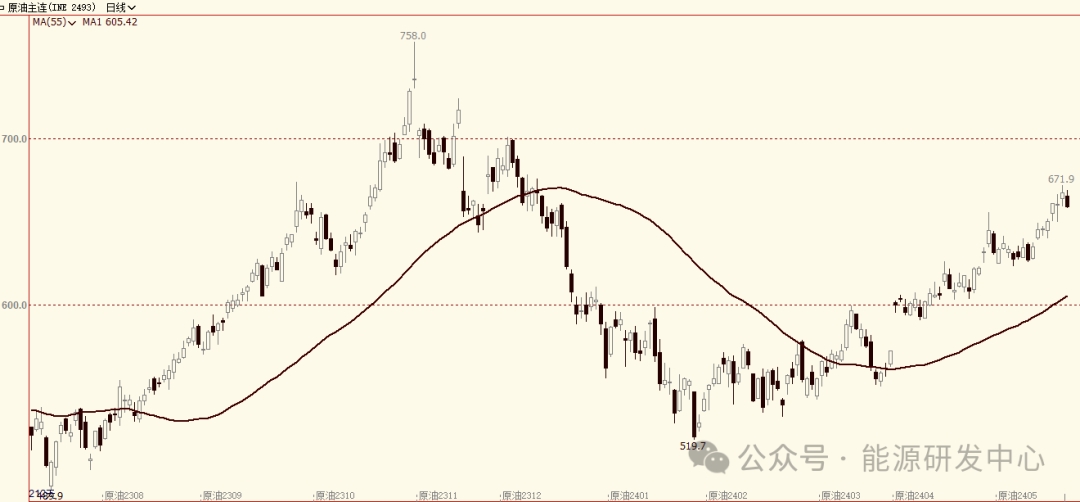 凌晨API數(shù)據(jù)顯示本周美國原油庫存增加了303.4萬桶,分析師預(yù)期增加241萬桶,數(shù)據(jù)整體弱于預(yù)期利空油價。整體來看油價仍維持高位大幅波動格局,投資者在等待新的指引。地緣方面哈以談判進展一波三折,周一以色列與哈馬斯之間的談判將來加沙停火的希望又有所減弱,地緣風(fēng)險仍支撐市場,但仍存在緩和可能,以色列方面迫于各方壓力不敢冒險激化局勢,這也讓投資者保持了觀望態(tài)勢。整體來看短期油價漲勢暫緩,調(diào)整需求逐漸占據(jù)上風(fēng),調(diào)整空間和節(jié)奏仍需逐步觀察,注意節(jié)奏把握,謹慎參與。