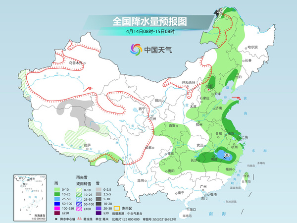 其中今天,內(nèi)蒙古東北部、新疆北疆東部和沿天山地區(qū)、西藏北部、西北地區(qū)中部等地部分地區(qū)有小到中雪或雨夾雪,其中,新疆北疆北部和北疆東部等地部分地區(qū)有大到暴雪,局地大暴雪。內(nèi)蒙古東北部、東北地區(qū)東部和北部、新疆北部、西藏東南部、江淮大部、江南、西南地區(qū)東部、華南北部、臺(tái)灣島等地部分地區(qū)有小到中雨,其中,江西南部、福建南部等地部分地區(qū)有大雨。