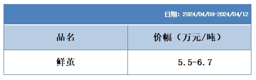 本周高品位生絲協(xié)作單位成交價格區(qū)間