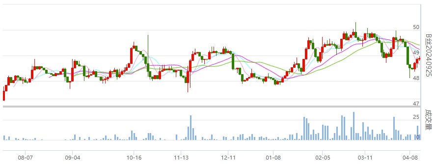 今日(2024年04月12日,周五)中國繭絲綢交易市場生絲指數(shù)上漲0.10%收于4899.68點(diǎn),本周生絲指數(shù)下跌0.56%。B絲(商檢4A級生絲):240425合約上漲0.06萬元報(bào)收于48.72萬元;240925合約上漲0.03萬元報(bào)收于48.90萬元;250325合約上漲0.24萬元報(bào)收于49.56萬元。