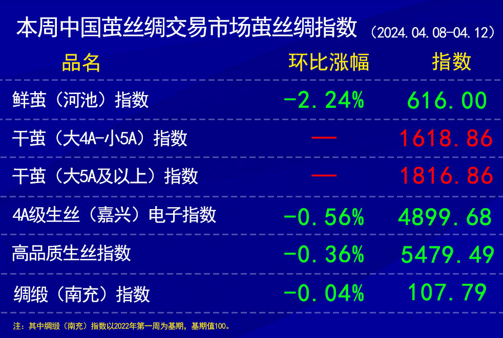 本周中國繭絲綢交易市場繭絲綢指數(shù)