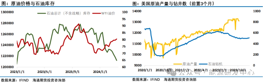 周五國際能源署(IEA)公布了三大機(jī)構(gòu)4月份最后一份月報(bào),報(bào)告稱今明兩年全球石油需求增長將放緩,IEA下調(diào)了對(duì)2024年石油需求增長的預(yù)測(cè),理由是經(jīng)合組織國家的消費(fèi)低于預(yù)期,且工廠活動(dòng)大幅下滑。它將今年的增長前景下調(diào)了13萬桶/日,至120萬桶/日,并補(bǔ)充說,大的石油進(jìn)口國在疫情后釋放的被壓抑的需求已經(jīng)走到了盡頭。IEA在其月度石油報(bào)告中表示,許多國家的交付數(shù)據(jù)偏軟,因?yàn)槎┊惓嘏奶鞖馐菇?jīng)合組織取暖燃料的使用比正常情況減少得更多。此外,發(fā)達(dá)經(jīng)濟(jì)體工廠的持續(xù)低迷繼續(xù)抑制了對(duì)工業(yè)燃料的需求。同時(shí)判斷由于明年經(jīng)濟(jì)增長預(yù)期僅為2.9%,2025年石油需求將增長110萬桶/日。此前一天歐佩克月報(bào)中維持2024年、2025年全球原油需求增速預(yù)期在225、185萬桶/日不變。而美國能源署則在上調(diào)了2023年需求端數(shù)據(jù)基礎(chǔ)上,將2024年需求增長預(yù)期進(jìn)行了大幅下調(diào)48萬桶/日,至95萬桶/日(此前為143萬桶/日)。立場(chǎng)不同導(dǎo)致三大機(jī)構(gòu)對(duì)原油市場(chǎng)需求端的判斷分歧加大。