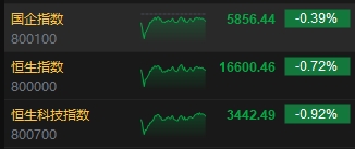 4月15日消息,今日港股三大指數(shù)探底后跌幅收窄。截至收盤,恒生指數(shù)(16600.461, -121.23, -0.72%)跌0.72%,報(bào)16600.46點(diǎn),恒生科技指數(shù)(3442.49, -31.98, -0.92%)跌0.92%,國企指數(shù)跌0.39%。盤面上,科網(wǎng)股多數(shù)下跌,網(wǎng)易跌超3%,阿里巴巴、騰訊、京東跌超1% ;黃金股普遍回落,招金礦業(yè)(13.22, -1.40, -9.58%)跌超9%;濠賭股集體下跌,金沙中國跌超4%;蘋果概念股普遍走低,富智康集團(tuán)(0.77, -0.08, -9.41%)跌超9%;“國九條”再提分紅監(jiān)管,中字頭股全天漲勢(shì)強(qiáng)勁,中國中車(4.49, 0.43, 10.59%)漲超10%,軍工股、半導(dǎo)體股、石油股、煤炭股等齊漲,中國石油(7.48, 0.16, 2.19%)漲超2%創(chuàng)2016年6月以來新高。