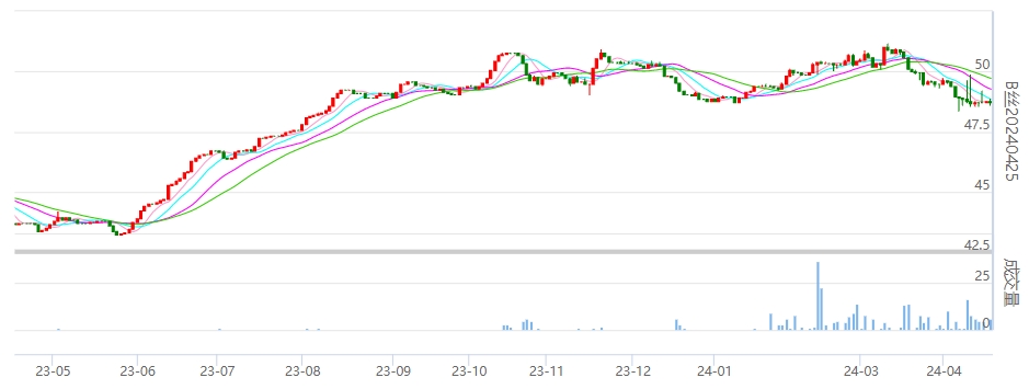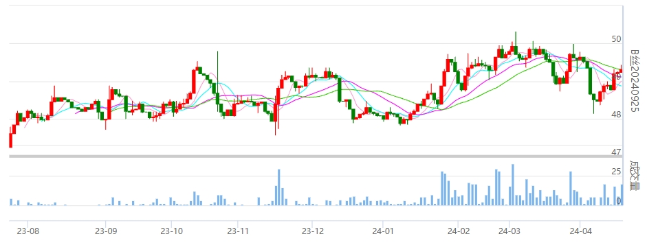 今日(2024年04月18日,周四)中國繭絲綢交易市場(chǎng)生絲指數(shù)微漲0.03%收于4905.76點(diǎn)。B絲(商檢4A級(jí)生絲):240425合約下跌0.03萬元報(bào)收于48.72萬元;240925合約上漲0.09萬元報(bào)收于49.32萬元;250325合約上漲0.24萬元報(bào)收于50.01萬元。