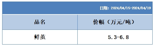 本周高品位生絲協(xié)作單位成交價(jià)格區(qū)間