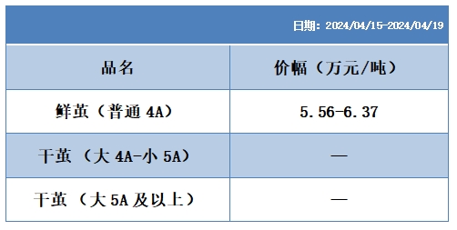 本周協(xié)作單位所報(bào)蠶繭價(jià)格區(qū)間統(tǒng)計(jì)