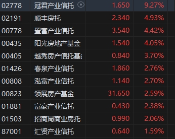 房地產(chǎn)信托板塊集體大漲,冠君產(chǎn)業(yè)信托漲超9%。中證監(jiān)宣布五項措施改良滬深港通,包括將房地產(chǎn)投資信托基金(REITs)納入滬深港通。