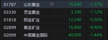 黃金股集體走低,山東黃金跌超7%。分析師表示,隨著中東地緣政治緊張局勢緩和,避險需求減少,交易員等待美國數(shù)據(jù),金銀價格走低。