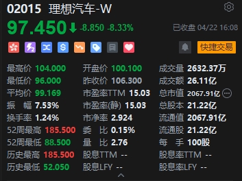 理想股價大跌逾8%。消息面上,理想全面調(diào)整價格體系,L系列降幅1.8萬-2萬元,MEGA降幅3萬元。乘用車市場信息聯(lián)席會秘書長崔東樹此前指出,今年是新能源車企站穩(wěn)腳跟的關鍵年,競爭注定非常激烈。