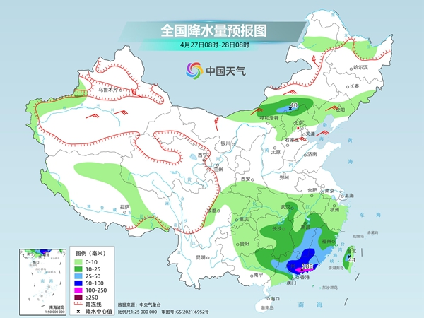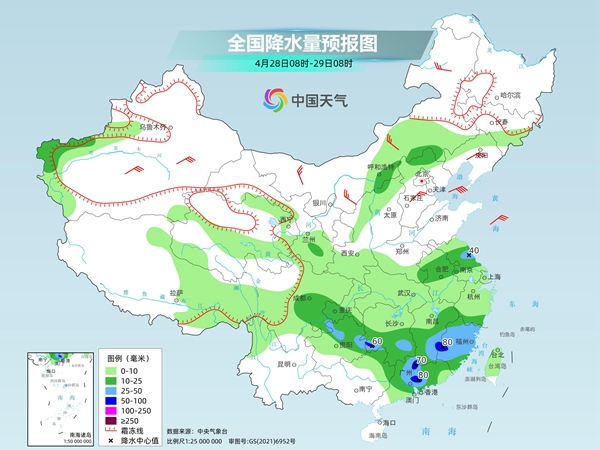 明天,內(nèi)蒙古中部、江南大部、華南中東部、臺灣島等地部分地區(qū)有中到大雨,其中,江西南部、福建南部、廣東中東部等地部分地區(qū)有暴雨或大暴雨。