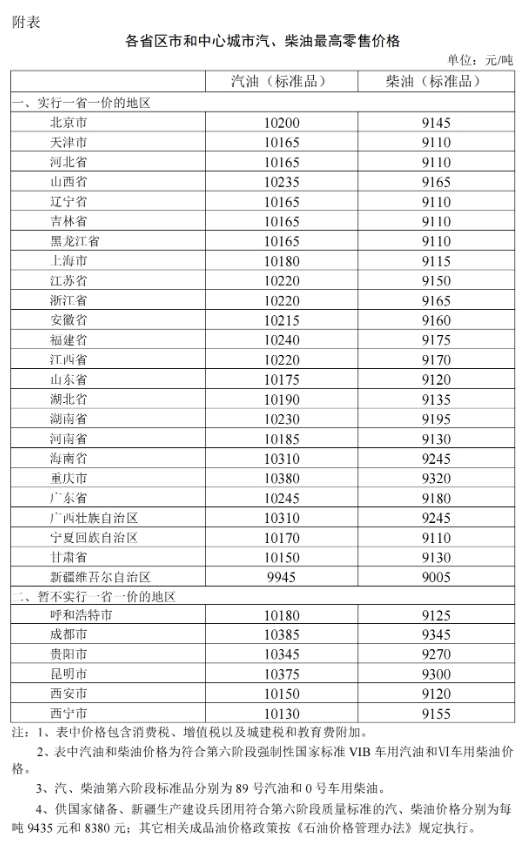 據(jù)國家發(fā)改委網(wǎng)站消息,根據(jù)近期國際市場油價變化情況,按照現(xiàn)行成品油價格形成機制,自2024年4月29日24時起,國內(nèi)汽、柴油價格(標準品,下同)每噸均降低70元。調(diào)整后,各省(區(qū)、市)和中心城市汽、柴油最高零售價格見附表。