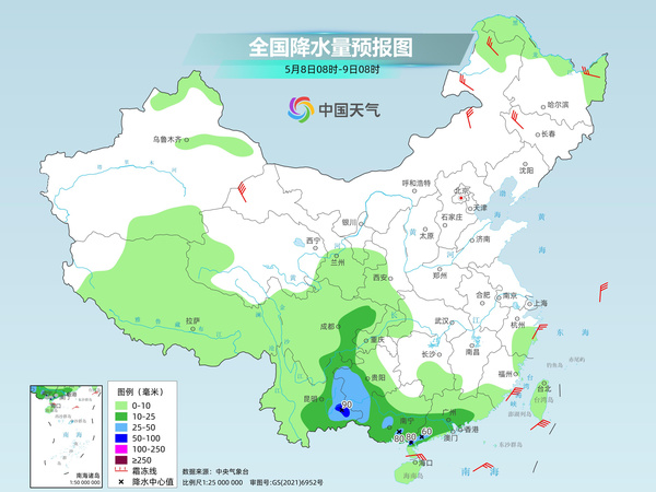 明天,四川盆地東部、云南中東部、貴州中西部、廣西中部和南部、廣東西部和南部等地部分地區(qū)有中到大雨,其中,云南東部、廣東西南部等地部分地區(qū)有暴雨。