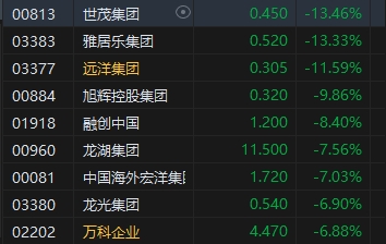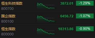 5月8日消息,港股三大指數(shù)集體收跌,截至收盤,恒生指數(shù)(18313.859, 0.00, 0.00%)跌1.29%,報(bào)18313.86點(diǎn),恒生科技指數(shù)(3872.01, 0.00, 0.00%)跌1.29%,國企指數(shù)跌1.07%。盤面上,科網(wǎng)股普跌,阿里巴巴跌超2%,美團(tuán)、百度、騰訊、網(wǎng)易跌超1%,小米逆勢(shì)漲超6%;內(nèi)房股領(lǐng)跌大市,世茂集團(tuán)(0.45, 0.00, 0.00%)跌超13%,萬科企業(yè)(4.47, 0.00, 0.00%)跌超6%,帶動(dòng)物管股齊挫;中資券商股盈利承壓,海通證券(3.72, 0.00, 0.00%)、中金公司(9.55, 0.00, 0.00%)跌超4%;煤炭股逆勢(shì)上漲,中煤能源(8.56, 0.00, 0.00%)漲近5%;受錳期貨持續(xù)走強(qiáng)影響,南方錳業(yè)(0.59, 0.00, 0.00%)大漲超32%;影視、啤酒、SaaS、半導(dǎo)體等板塊均跌幅靠前。
