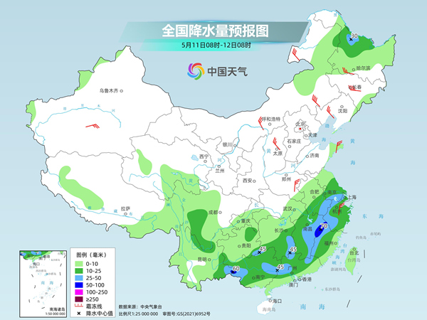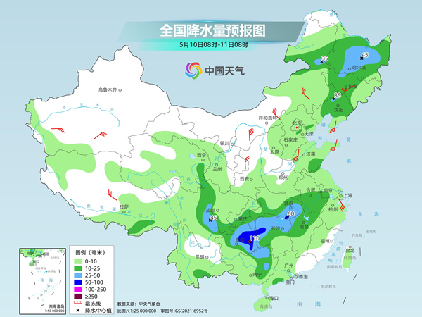 受暖濕氣流和冷空氣共同影響,未來三天,南方新一輪較強(qiáng)降水開啟,降雨重心主要位于貴州到江南、華南北部一帶,部分地區(qū)有大到暴雨,局地大暴雨,主要降雨時段集中在10日夜間至11日。同時,今明天,華北、黃淮、東北等地有陣雨或雷陣雨,部分地區(qū)有強(qiáng)對流天氣。