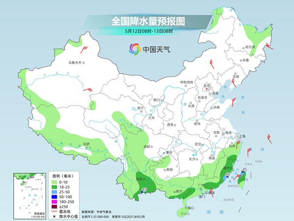 后天,浙江南部、福建中東部、廣東中南部、廣西南部、云南中東部、臺灣島等地的部分地區(qū)有中到大雨。