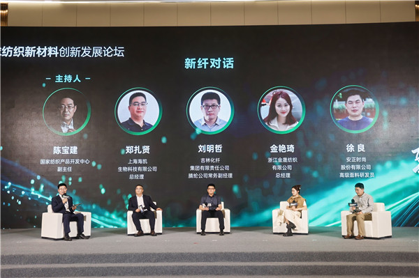 在“新纖對(duì)話”環(huán)節(jié),來(lái)自纖維、面料和服裝領(lǐng)域的優(yōu)秀企業(yè)代表共同探討了纖維材料的創(chuàng)新研發(fā)方向以及商業(yè)轉(zhuǎn)化的可行路徑。