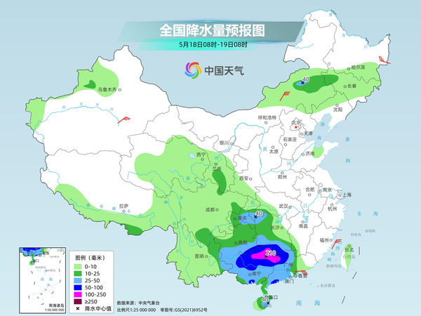 明天開始,隨著暖濕氣流加強(qiáng)北上,南方降雨又將增多增強(qiáng)。預(yù)計(jì)18日至21日,西南地區(qū)東部、華南、江南南部等地將出現(xiàn)一次強(qiáng)降雨過程,部分地區(qū)有暴雨,廣西中東部、廣東中西部及華南沿海等地部分地區(qū)有大暴雨,廣西東部、廣東中西部局地有特大暴雨;上述部分地區(qū)有短時強(qiáng)降水,局地有雷暴大風(fēng)等強(qiáng)對流天氣。