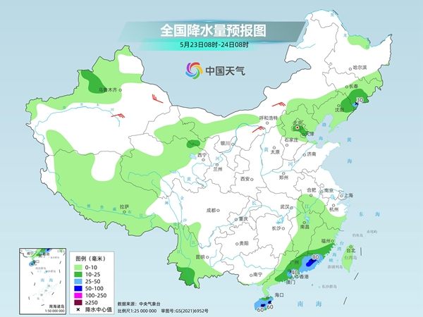 今明兩天(5月23日至24日),南方的降雨將繼續(xù)收縮,湖北、湖南、江西等地晴天將開始“營業(yè)”,但在廣東、福建以及海南島等地仍會有較強(qiáng)降雨出現(xiàn)。此外,北方多地氣溫沖高回落,西北、華北地區(qū)降溫顯著。
