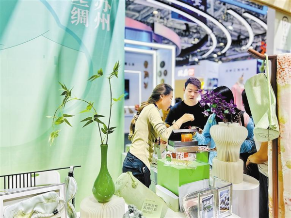 “我們就帶了8套蠶絲便攜毯過來,半天就賣光了,還有商家找我們預(yù)定500套,我們都不夠貨賣了!”5月25日,位于11號(hào)展館江蘇展區(qū)的蘇州太湖雪絲綢股份有限公司藝術(shù)設(shè)計(jì)經(jīng)理趙梓君告訴記者。