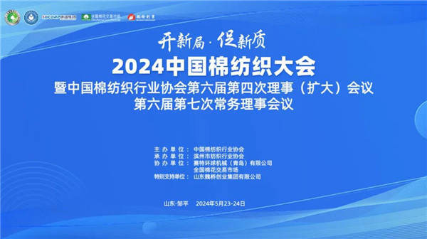 5月24日,2024中國棉紡織大會暨中國棉紡織行業(yè)協(xié)會第六屆第四次理事(擴大)會議、第六屆第七次常務(wù)理事會議在山東省鄒平市舉行。會議由中國棉紡織行業(yè)協(xié)會主辦,濱州市紡織行業(yè)協(xié)會承辦,賽特環(huán)球機械(青島)有限公司、全國棉花交易市場協(xié)辦,并得到了山東魏橋創(chuàng)業(yè)集團有限公司的特別支持。