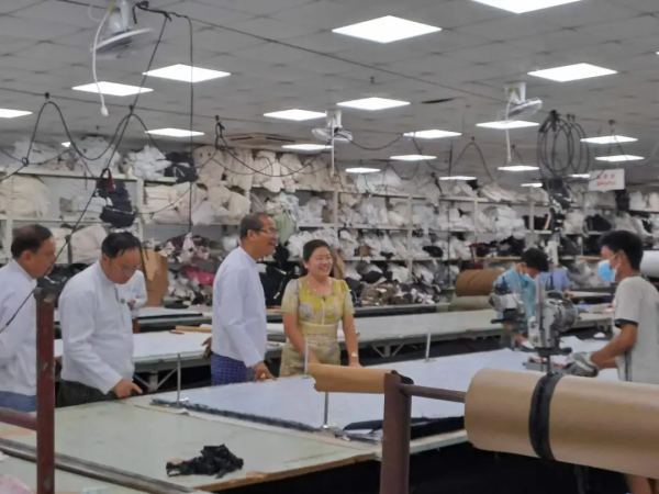 近日,緬甸仰光省勞動部常務(wù)部長U Win Shein一行到訪江蘇蘇豪(緬甸)實業(yè)有限公司,開展專題調(diào)研交流。工廠廠長周士文、財務(wù)負(fù)責(zé)人范劉思宇、人事部經(jīng)理Thiri Yu Wai陪同調(diào)研。