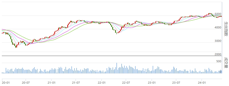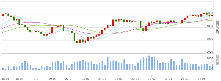 今日(2024年05月31日,周五)中國繭絲綢交易市場生絲電子指數(shù)上漲0.08%報于4964.69點,本周生絲電子指數(shù)上漲0.77%,本月生絲指數(shù)上漲1.72%。B絲(商檢4A級生絲):240625合約下跌0.03萬元報收于49.20萬元;240925合約下跌0.03萬元報收于49.50萬元;250325合約上漲0.12萬元報收于50.31萬元。