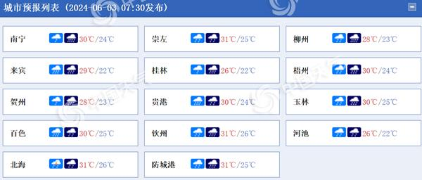 廣西各城市預(yù)報(bào)。(來(lái)源:中國(guó)天氣網(wǎng))