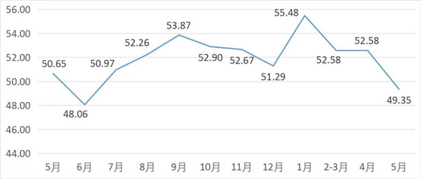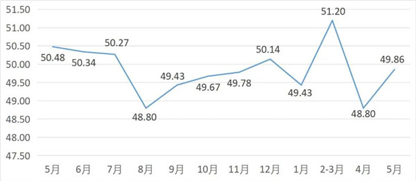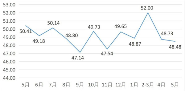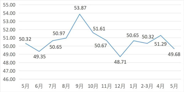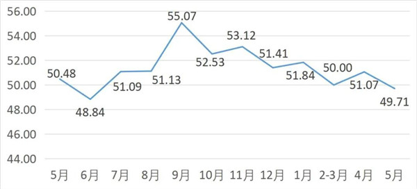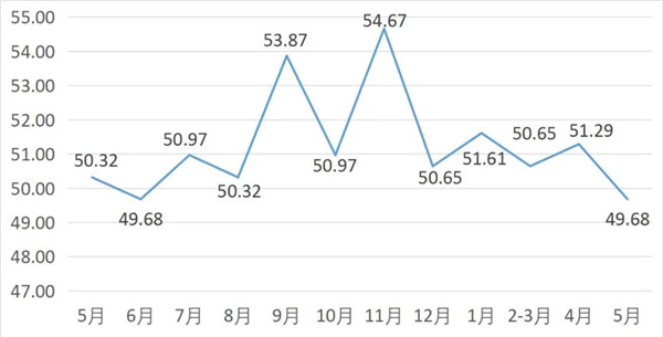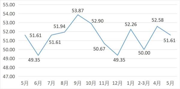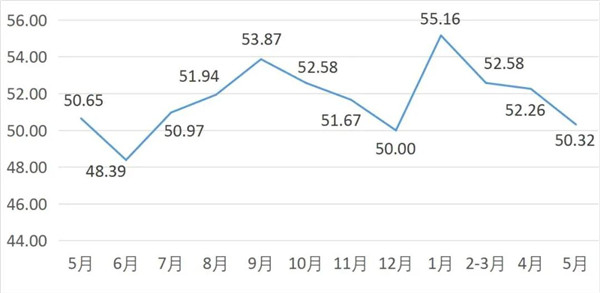 從管理者景氣指數(shù)來看,總指數(shù)中,5月管理者景氣指數(shù)為50.16,較上月下降1.88個百分點;經(jīng)營環(huán)境指數(shù)為51.94,較上月下降0.64個百分點。
