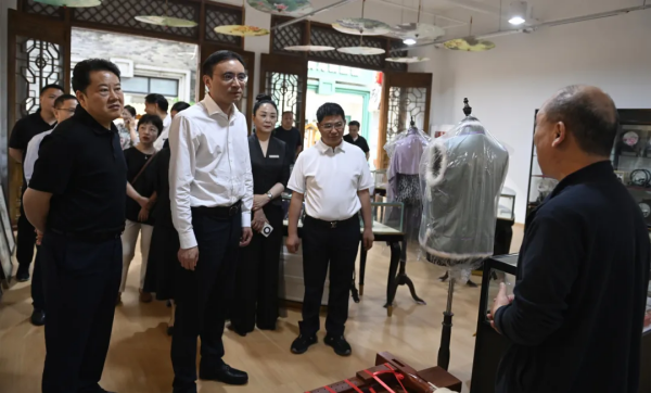 2024年6月4日,成都市新都區(qū)委書記王忠誠帶隊前往錦門蜀錦蜀繡產(chǎn)業(yè)核心發(fā)展基地,就推進蜀錦蜀繡的非遺傳承與發(fā)展進行調(diào)研,區(qū)人大主任吳彬、區(qū)委常委宣傳部長文靜、區(qū)人大副主任伍濤和區(qū)委辦公室、區(qū)人大常委會辦公室、區(qū)發(fā)改局、區(qū)文廣體旅局、區(qū)商務(wù)局等區(qū)級相關(guān)部門主要負(fù)責(zé)人以及三河街道黨工委副書記參加調(diào)研和座談會。