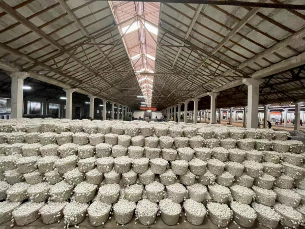風(fēng)吹桑麻綠,桑養(yǎng)蠶繭肥。6月5日,江蘇省東臺(tái)市富安鎮(zhèn)一年一度的春蠶收購工作拉開帷幕。蠶農(nóng)們滿載“碩果”前來交售,工作人員則忙著對(duì)蠶繭進(jìn)行稱重、品質(zhì)鑒定。人來人往,好不熱鬧。在江蘇富安繭絲綢股份有限公司富南繭站的現(xiàn)場(chǎng),江蘇蘇豪國際集團(tuán)股份有限公司(以下簡稱“蘇豪股份”)組織了平均年齡25歲的青年突擊隊(duì),進(jìn)行選繭、復(fù)磅、開碼單等工作,充分發(fā)揮“上下一盤棋,全員一條心”的協(xié)作精神,以飽滿的精神、溫暖的微笑、熱情的服務(wù)展示國企助農(nóng)的靚麗風(fēng)采。