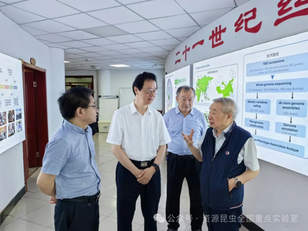 2024年6月7日,中國工程院院士、第十四屆全國人大常委兼農(nóng)業(yè)與農(nóng)村委副主任委員、中國農(nóng)業(yè)科學(xué)院原院長、農(nóng)業(yè)農(nóng)村部原黨組成員、校友唐華俊研究員蒞臨資源昆蟲高效養(yǎng)殖與利用全國重點實驗室(西南大學(xué)),看望中國工程院院士、原西南農(nóng)業(yè)大學(xué)校長向仲懷教授,考察指導(dǎo)實驗室隊伍建設(shè)等。西南大學(xué)原副校長丁忠民教授陪同,實驗室主任代方銀,副主任何寧佳、袁聯(lián)偉等參加會見并匯報有關(guān)工作。