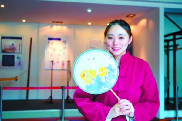 鄭依霏拿起一把雅致的綾絹扇邊展示邊向記者介紹,這是她受熱播古裝劇的啟發(fā),與蘇州團扇制作傳承人合作推出的仿古宮廷團扇?!斑@個產(chǎn)品可以說是我們的‘爆款’,一推出就很受歡迎。”